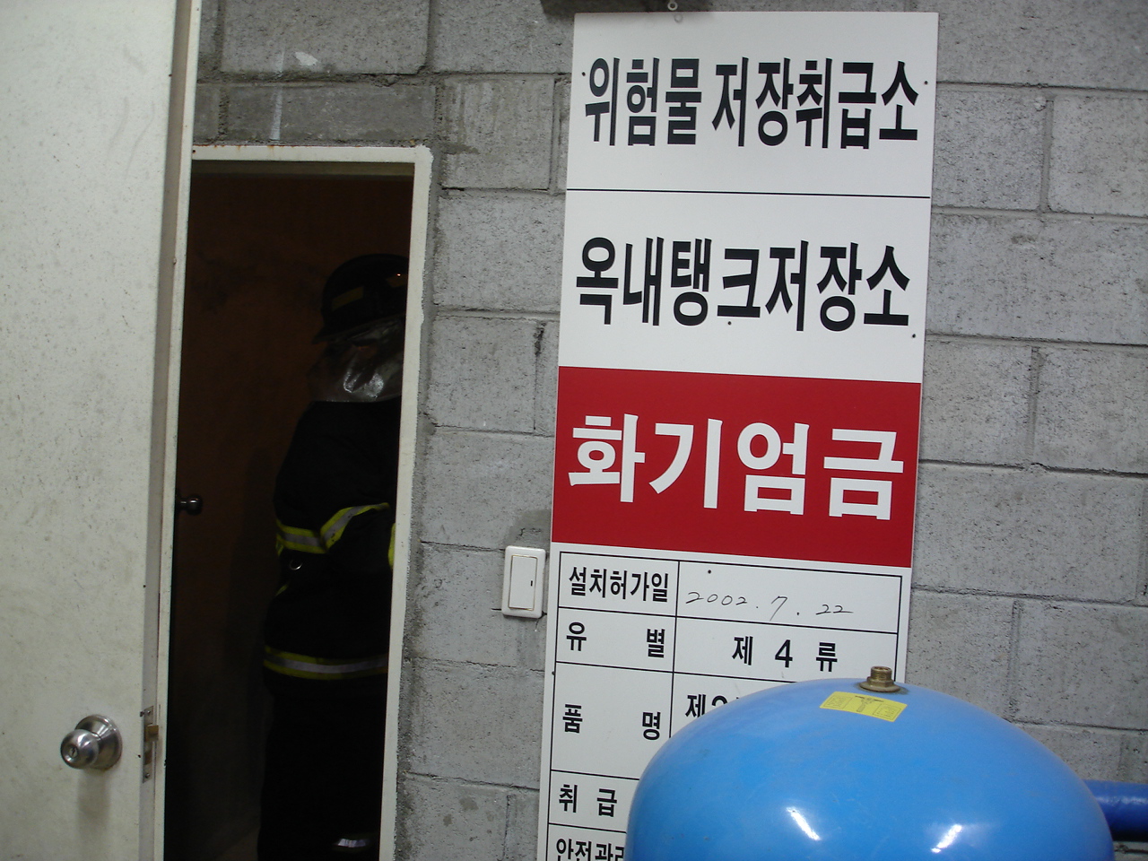 방화관리자의 안내에 따라 위험물 시설(경유 11,000L) 및 주방 보일러시설 등을 확인하였으며