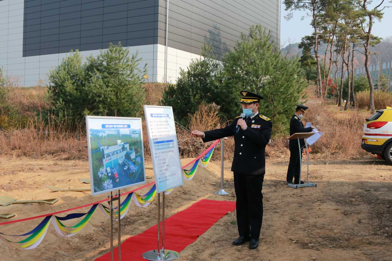 기업119안전센터 신축을 기념하고 안전한 공사를 위한 시간을 가졌습니다.