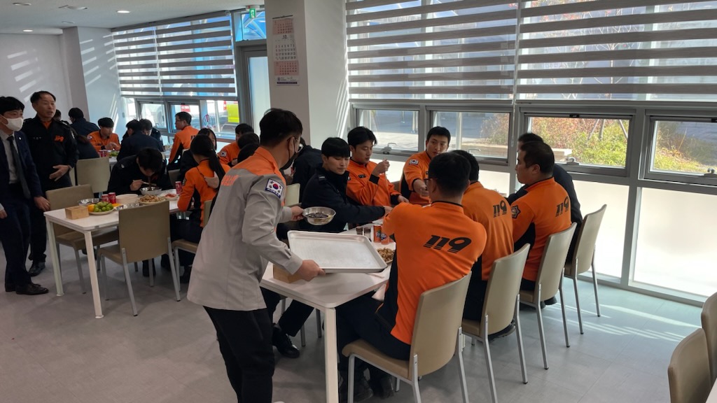 □ 이날 대원들은 즉석에서 100인분 이상의 짜장면과 탕수육을 만들어 2개월간 실종자 수색에 동원된 원주소방서 직원 및 의용소방대원을 격려하기 위해 맛있는 점심식사를 제공했습니다.