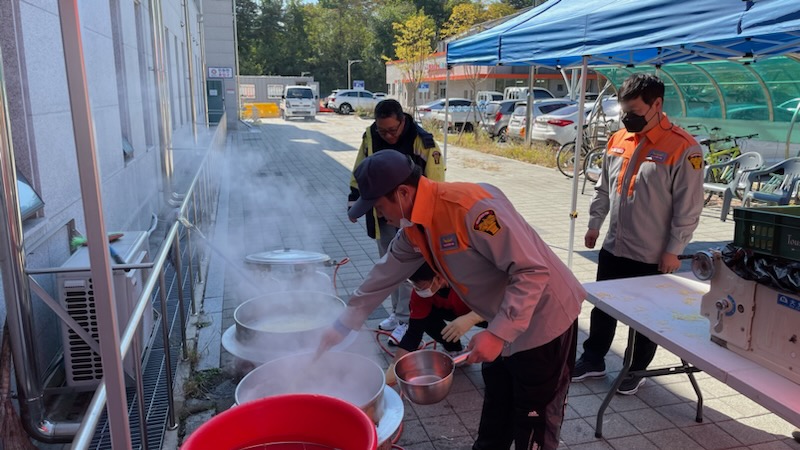 □ 원주남성의용소방대(대장 이동원)는 2022년 8월 9일 부론면 실종자 수색에 동원되었던 원주소방서 직원들과 의용소방대원들을 위해 10월 18일(화) 점심식사로 짜장면, 탕수육 나눔 활동을 실시했습니다.