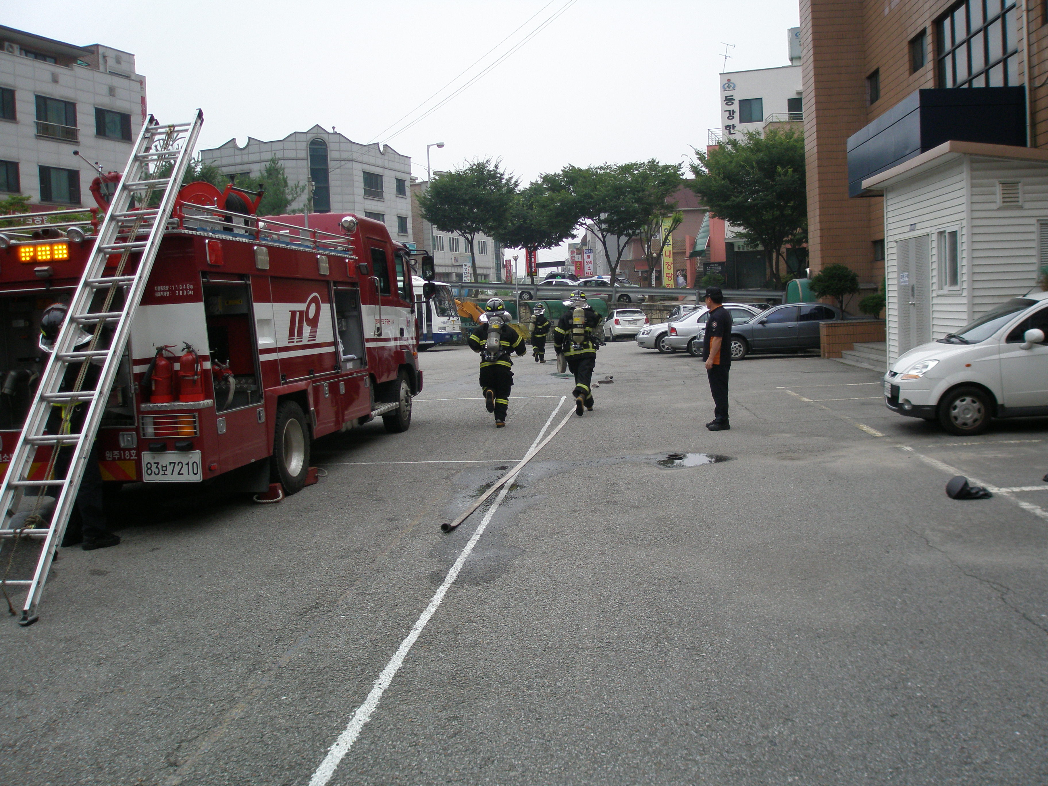 원주소방서(서장 박창진) 명륜119안전센터에서는 금일 센터 후정에서 화재진압훈련(4인방법)을 실시하였습니다. "훈련은 실전같이, 실전은 훈련같이" 라는 말이 있듯이 언제 어디서나 화재가 발생하여도 즉시 진압할 수 있는 능력을 기르기 위하여 무더운 여름이지만 모두들 열과 성을 다하여 값진 땀방울을 흘렸던 시간이었습니다