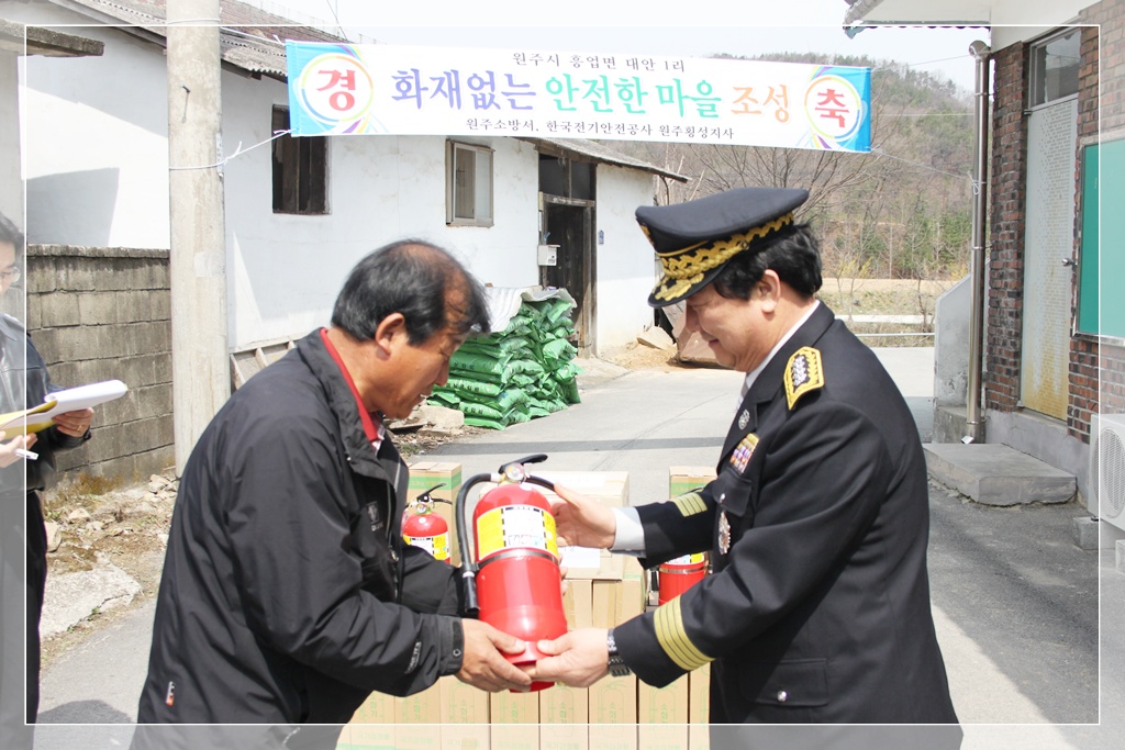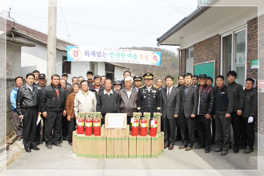 원주소방서(서장:김시균)는 12일 오전 11시 흥업면 대안리 동덜미마을에서 소방공무원, 의용소방대원, 전기안전공사 직원 및 마을 주민 등 50여명이 참석한 가운데 화재 없는 마을 조성 행사를 가졌다.
