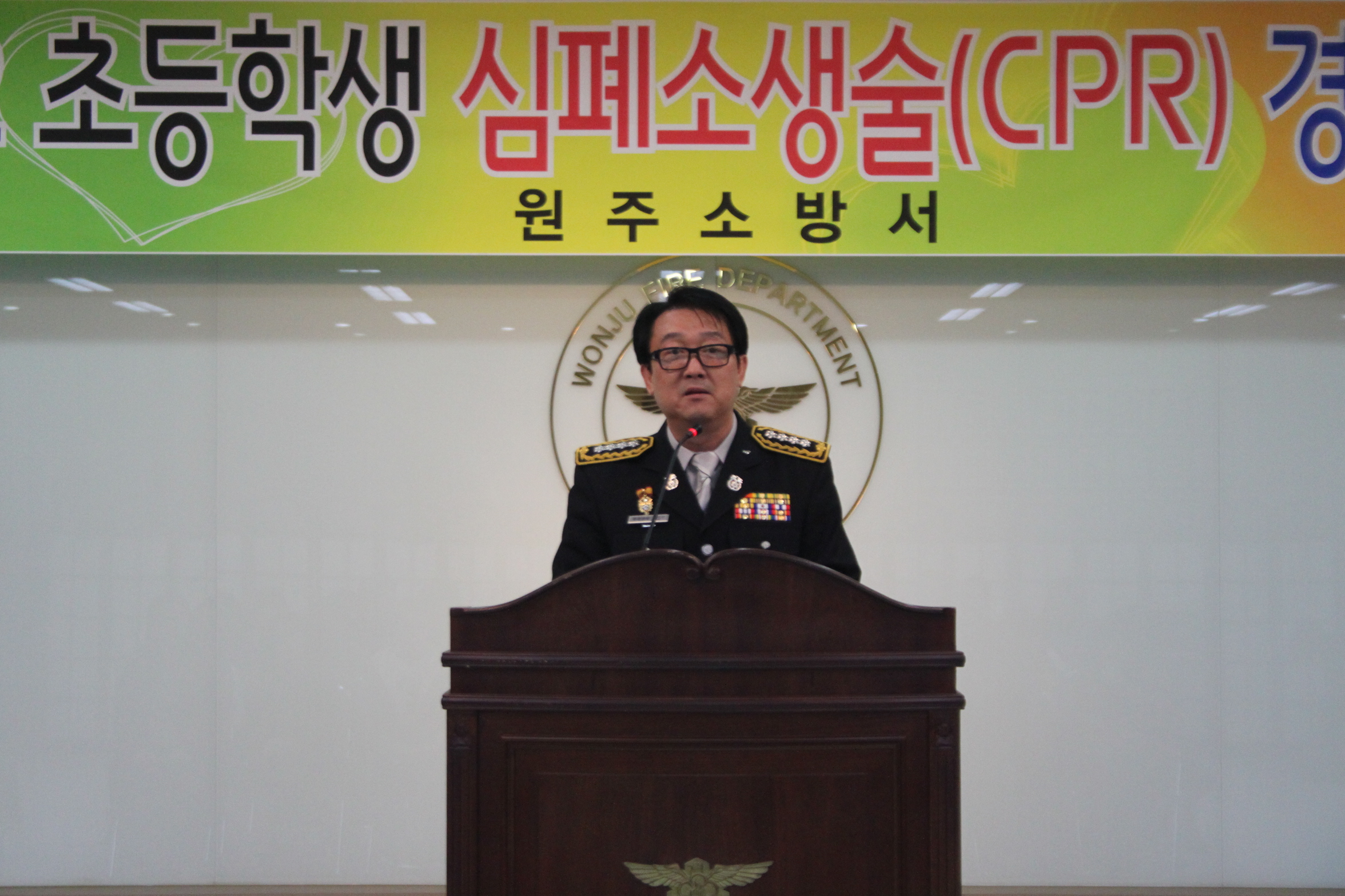 김시균 원주소방서장은 16일 오후 14시 원주소방서 대회의실에서 지역 14개교 16팀이 참여하여 심폐소생술 경연대회를 펼쳤다.