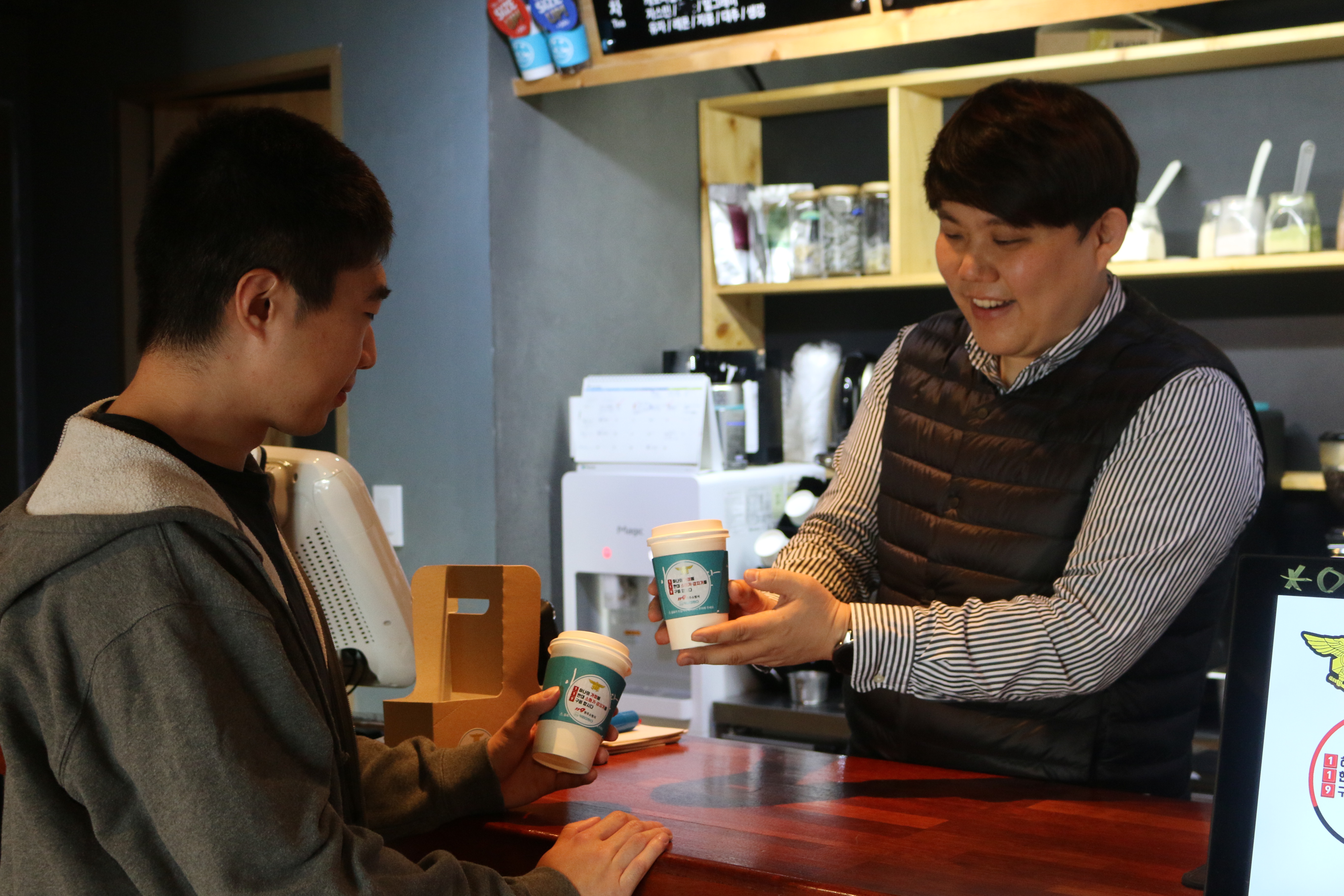 커피더판다 협업 커피컵홀더 소방홍보