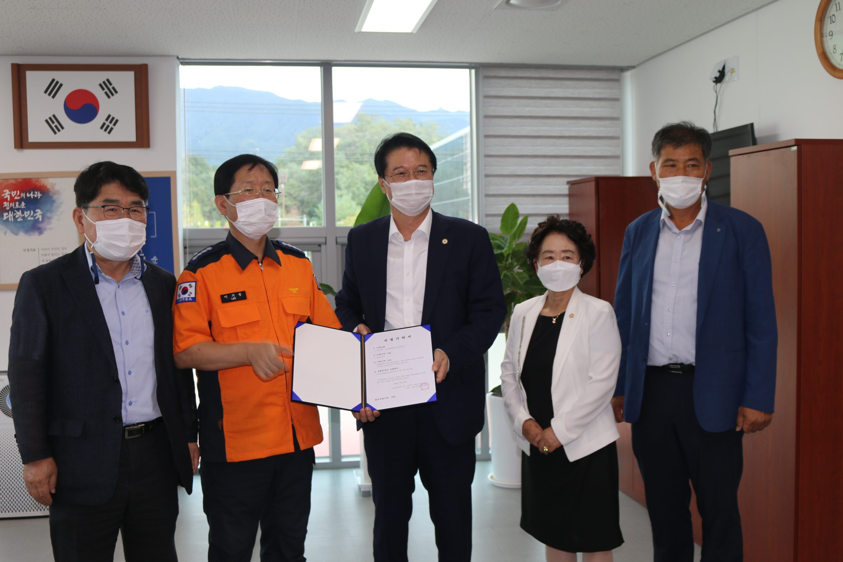 원주소방서에 25일 원주지역 기관, 단체장 모임인 원주 이수회(회장 원창묵)가 추석 명절을 앞두고 시민을 위해 헌신하는 원주소방서를 찾아 위문금을 전달하고 직원들을 격려했습니다.