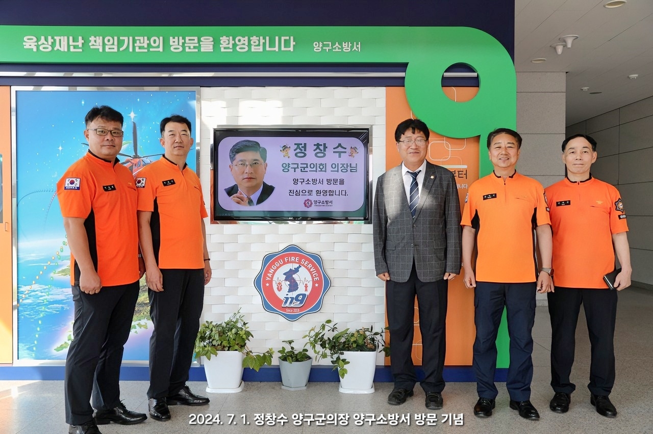용 서장은 “양구군의회 의장으로 선출되신 것을 축하드린다”며 “군민의 행복과 안전을 위해 양구군과 소방이 함께 나아가길 기대한다”고 전했다.