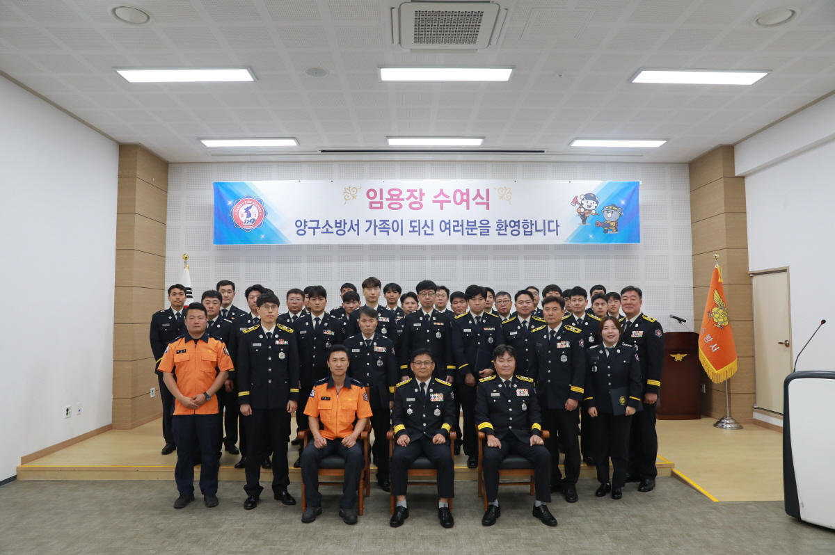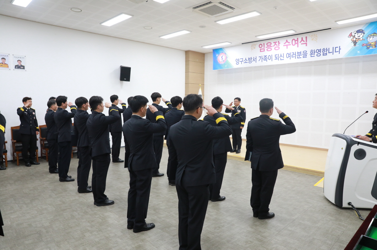 양구소방서(서장 권혁범)는 7일 오전 10시 양구소방서 대회의실에서 2025년 7월 7일자 소방공무원 인사발령에 따른 신규 소방공무원에 대한 임용장 수여식을 가졌다.