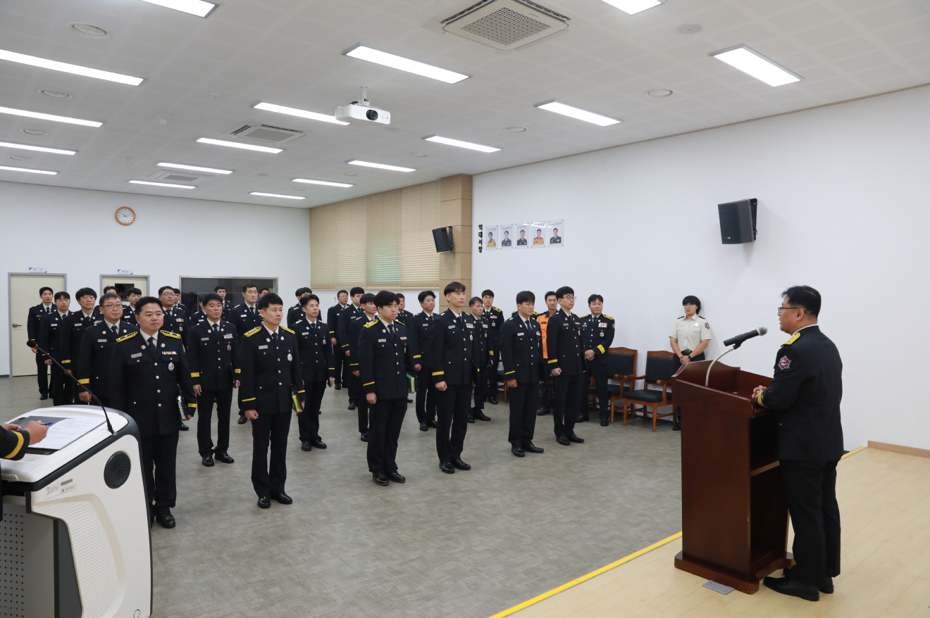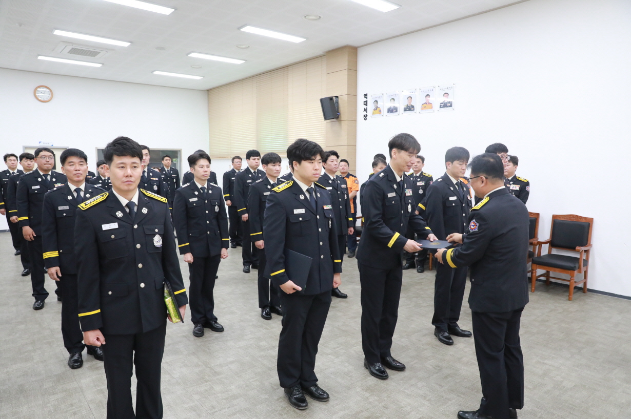이날 총 29명의 소방공무원에게 승진 및 전보 임용장을 수여하였으며, 소방서 간부진과 동료 직원들이 참석해 승진자와 전보자들에게 따뜻한 격려와 축하를 보냈다.