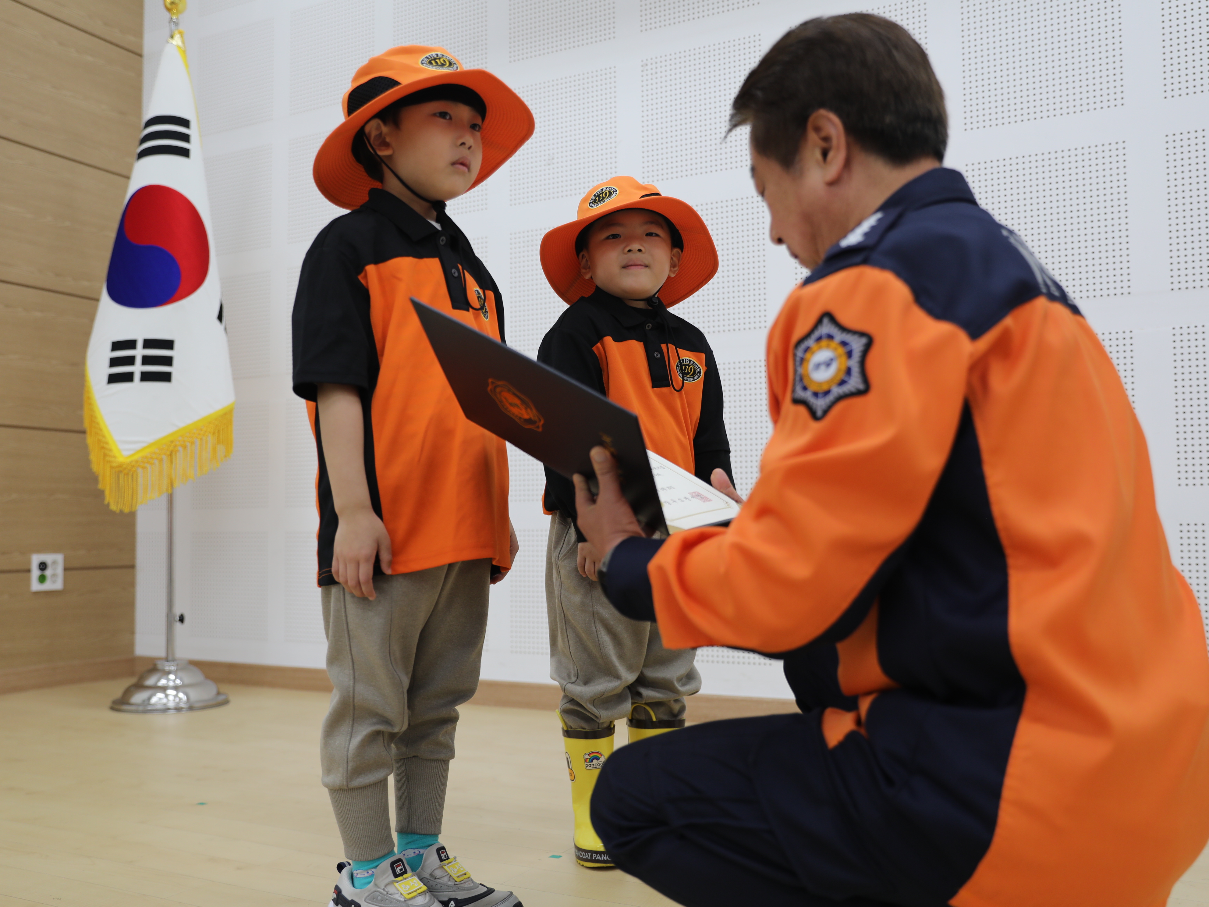 귀여운 어린이들이 미래안전리더로 잘 성장할 수 있도록 119청소년단 발대식을 가졌습니다.