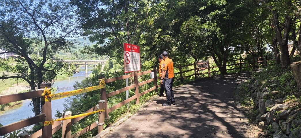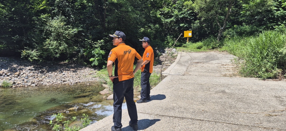 방산면 수입천 일대 및 119시민수상구조대 순찰 장소를 사전 점검했습니다.