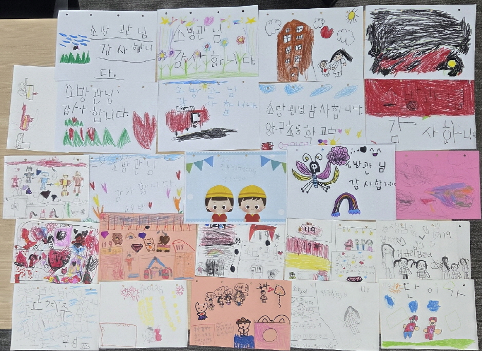 양구초등학교 병설유치원 아이들이 그림편지를 보내주었어요