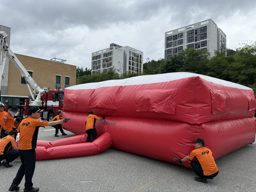 양구소방서, 고층아파트 피난 대비 공기안전매트 훈련 실시!