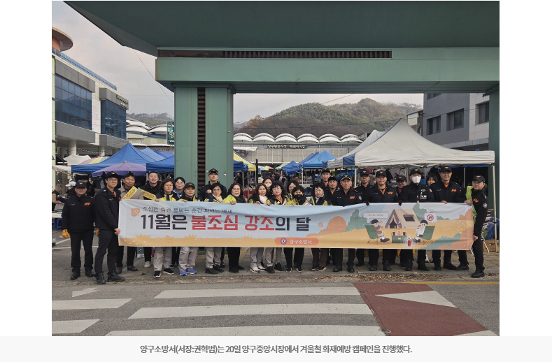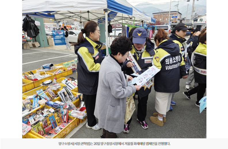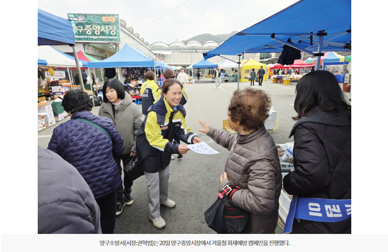 【양구】양구소방서(서장:권혁범)는 20일 양구중앙시장에서 겨울철 화재예방 캠페인을 진행했다.
