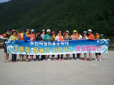주천여성의용소방대(대장 전금자)에서는 8월 15일 단합을 위한 야유회를 개최하면서 동강 래프팅 체험 및 물놀이 안전 캠페인을 실시하였습니다.