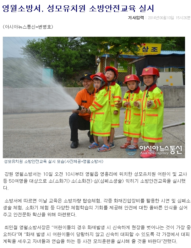 2014-6-11_[아시아뉴스통신]영월소방서,_성모유치원_소방안전교육_실시.jpg