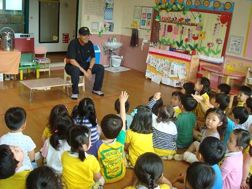 2011.06.29(수) 평창119안전센터 대화지역대 소방장 김진만, 소방교 이주한은 대화어린이집을 방문하여 원장 송혜진 외 50명(교사,원생)을 대상으로 119소방관 아저씨들이 하는 일, 소화기의 중요성 및 사용법·점검방법, 화재 시 대처 및 대피 방법 등 소방안전교육을 실시하였으며, 기회가 되면 소방서를 방문하여 소방차량 체험, 물소화기 체험 등 소방서 견학을 하기로 하였습니다.