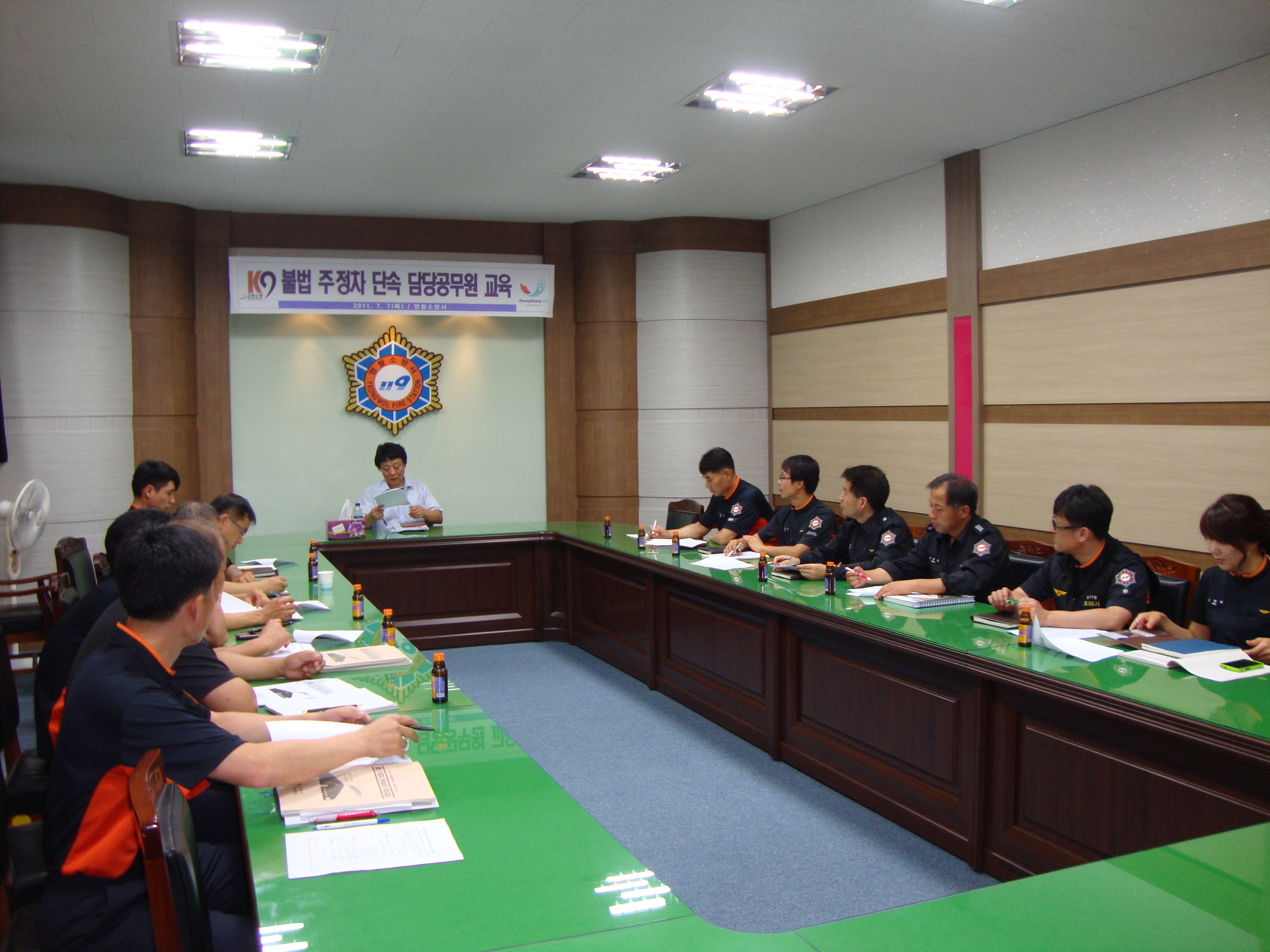 영월소방서(서장 안중석)는 7일 10시 도로교통법 개정에 따른 도 소속 소방공무원에게 불법 주정차 단속권이 부여됨에 따라 불법 주정차 담당 공무원에 대한 교육을 실시하였다.