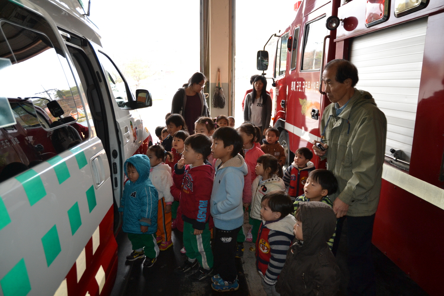 11. 6일(화) 오전 10시 30분부터 영월 성화어린이집 아동 및 교사 35명을 대상으로 화재시 대피요령, 119신고방법, 소방장비 사용체험 등 소방안전교육을 실시하였습니다.