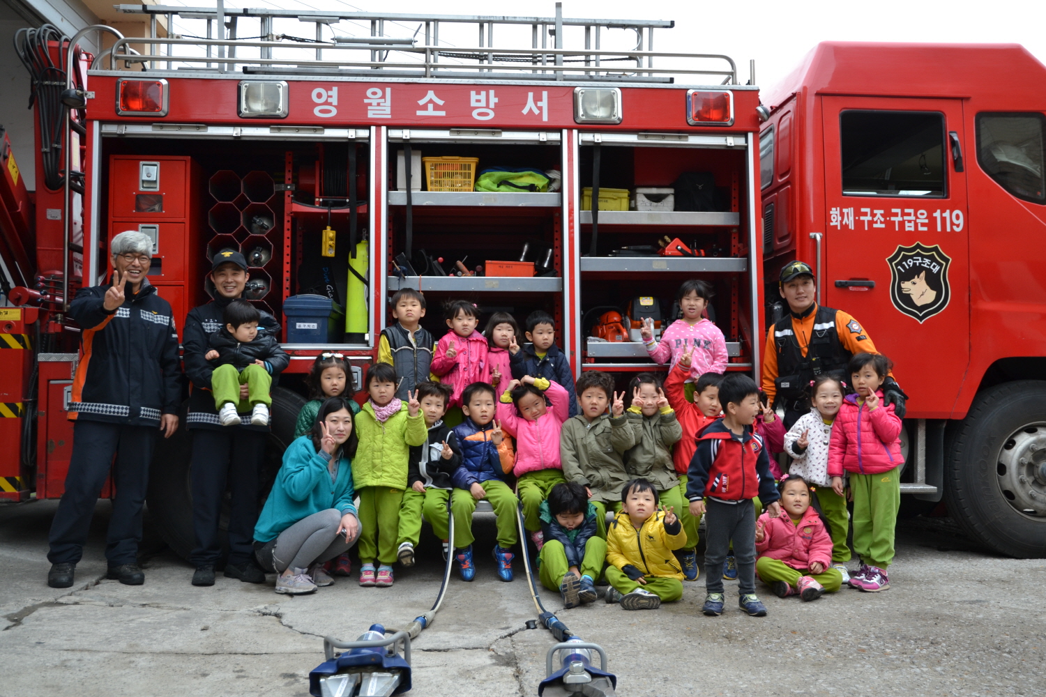 17일 오전 10시 영월제일어린이집 아동 및 교사 58명을 대상으로 화재시 대피요령, 119신고요령, 소방차량 관람·체험 등 소방안전교육을 실시하였습니다.