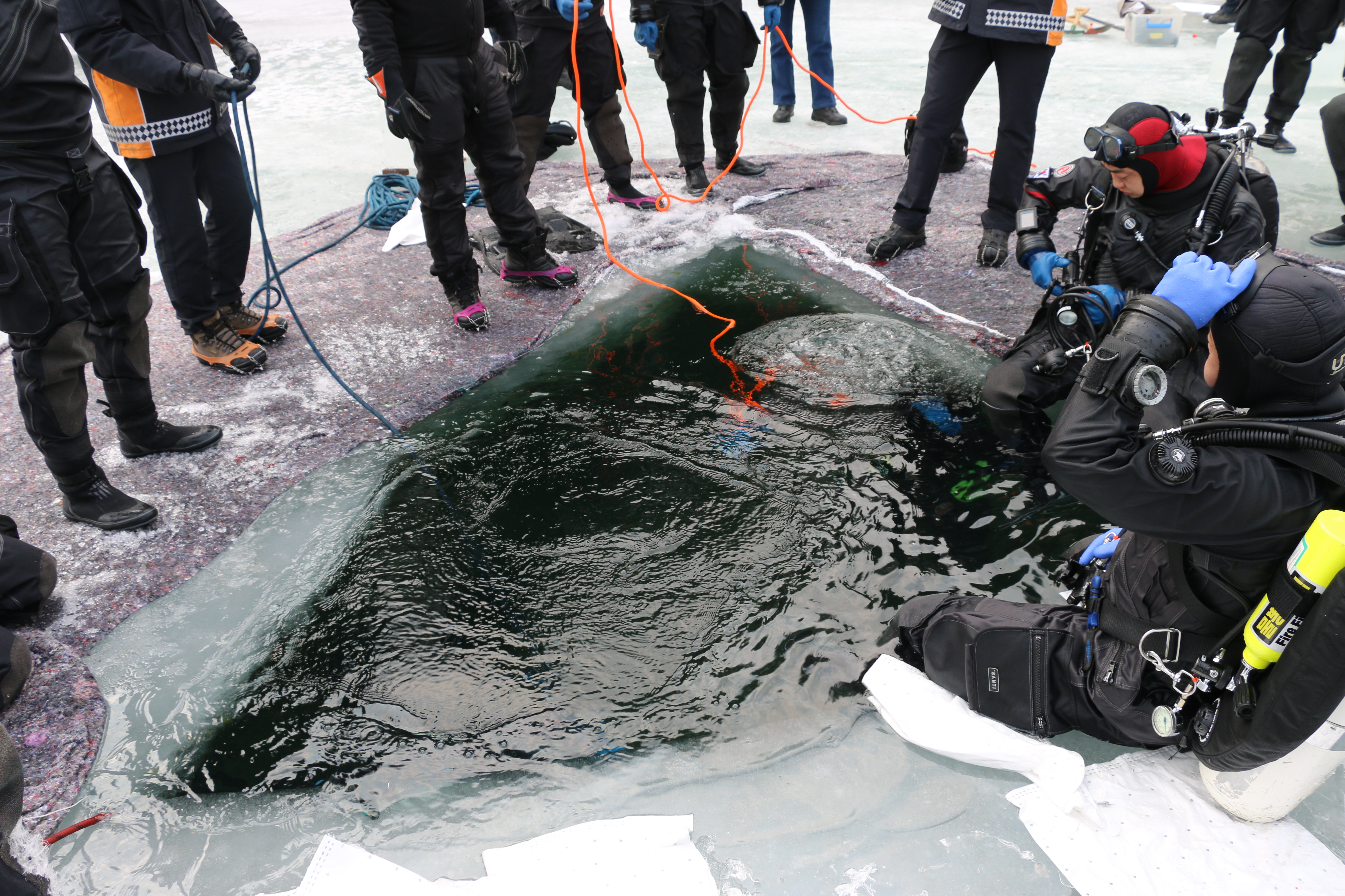 이번 훈련에는 수난 잠수장비 사용법 숙달 및 내수면 수난사고 유형별 인명구조훈련 등 겨울철 수난사고에 대비하여 신속·정확한 인명구조능력을 배양하여 효율적인 수난구조 활동을 전개하고자 훈련을 실시했다.