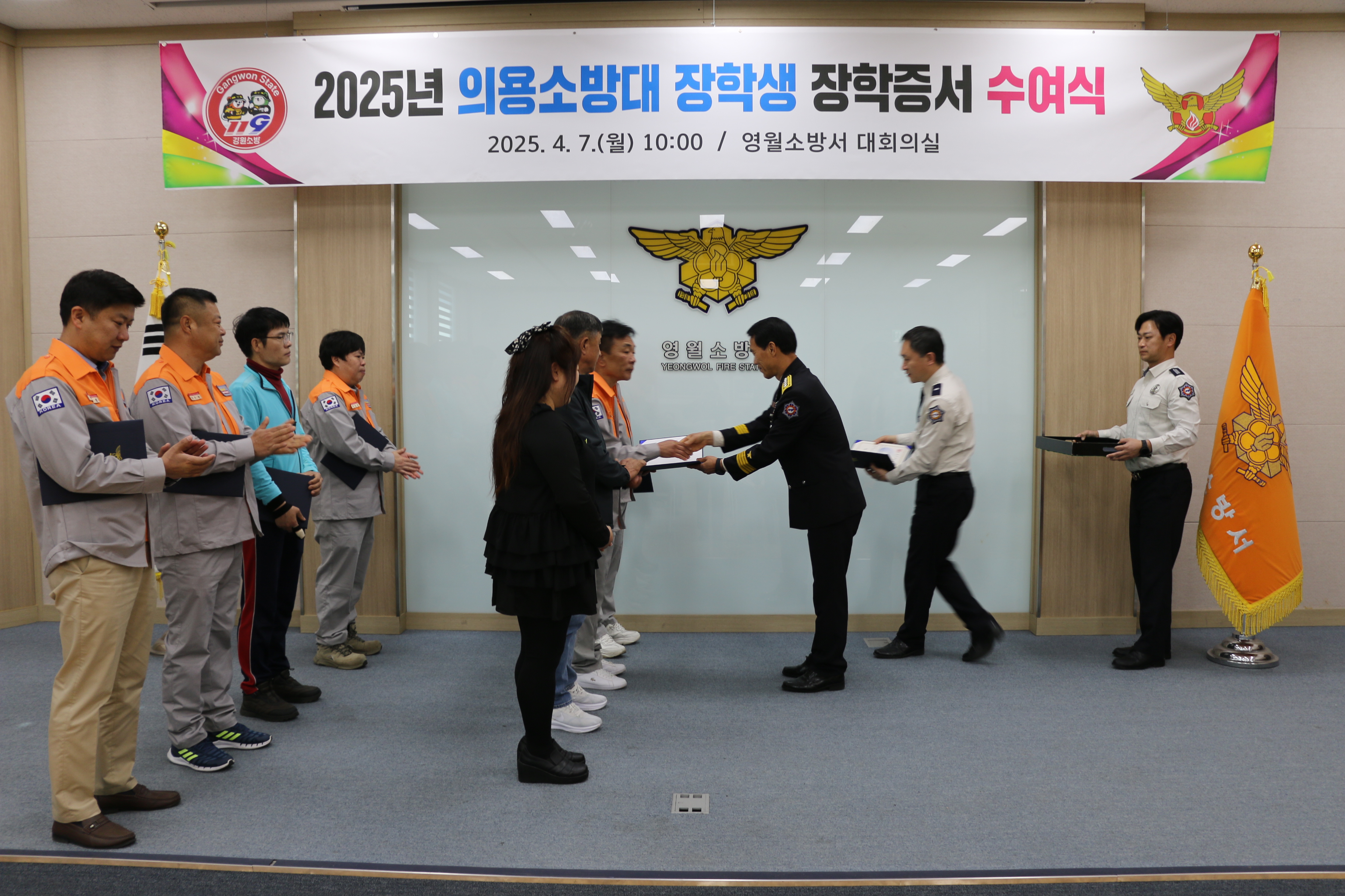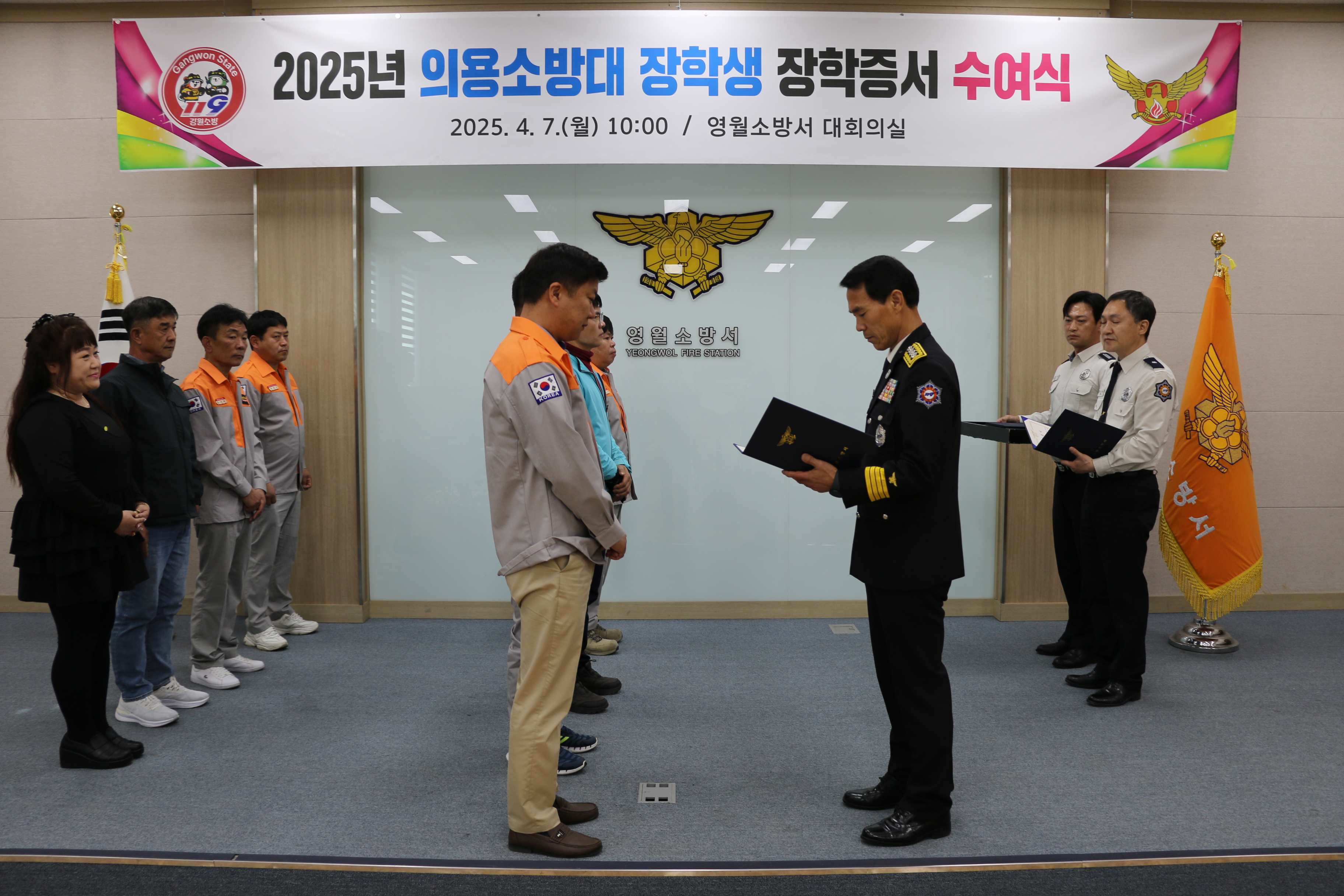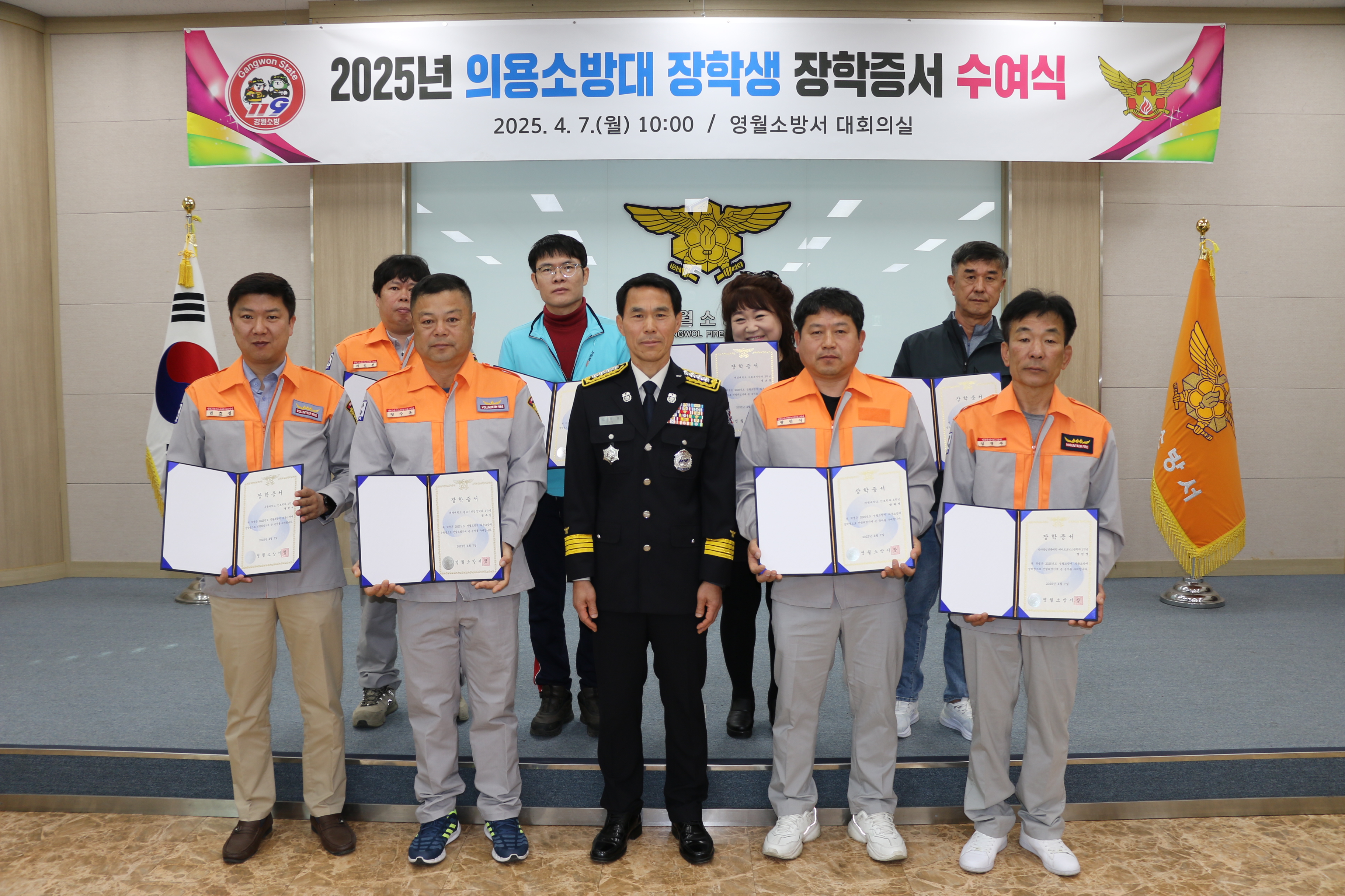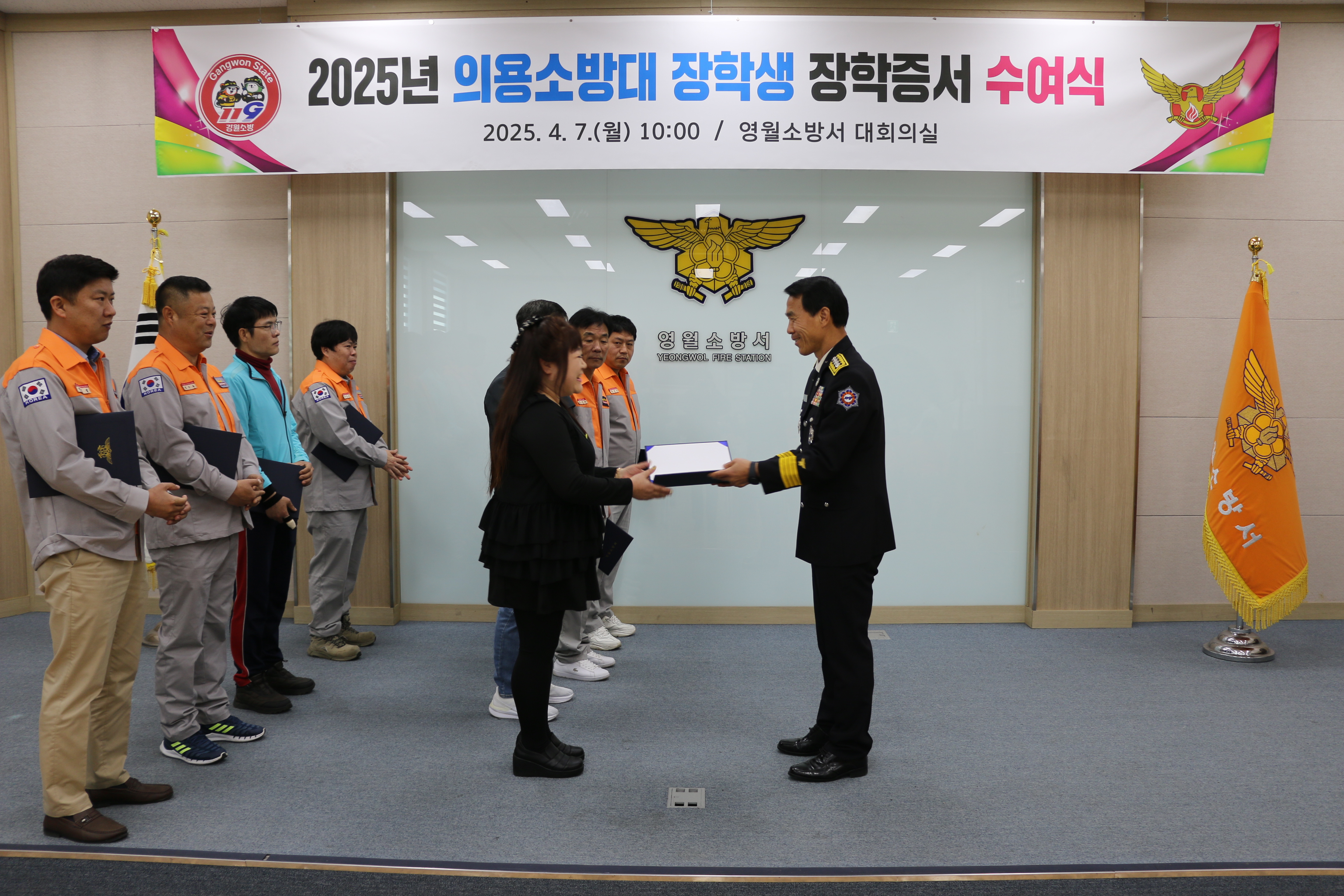 | 1274 | 의용소방대 장학생 장학증서 수여식 (25년 4월 7일) | 영월 | 2025-04-07 | 322 | |