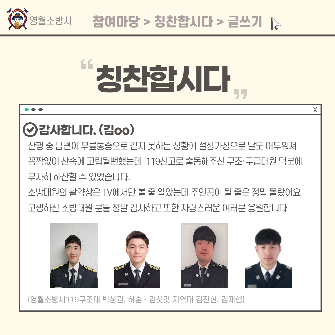 영월소방서 홈페이지 '칭찬합니다' 창구 많이 이용해주세요~