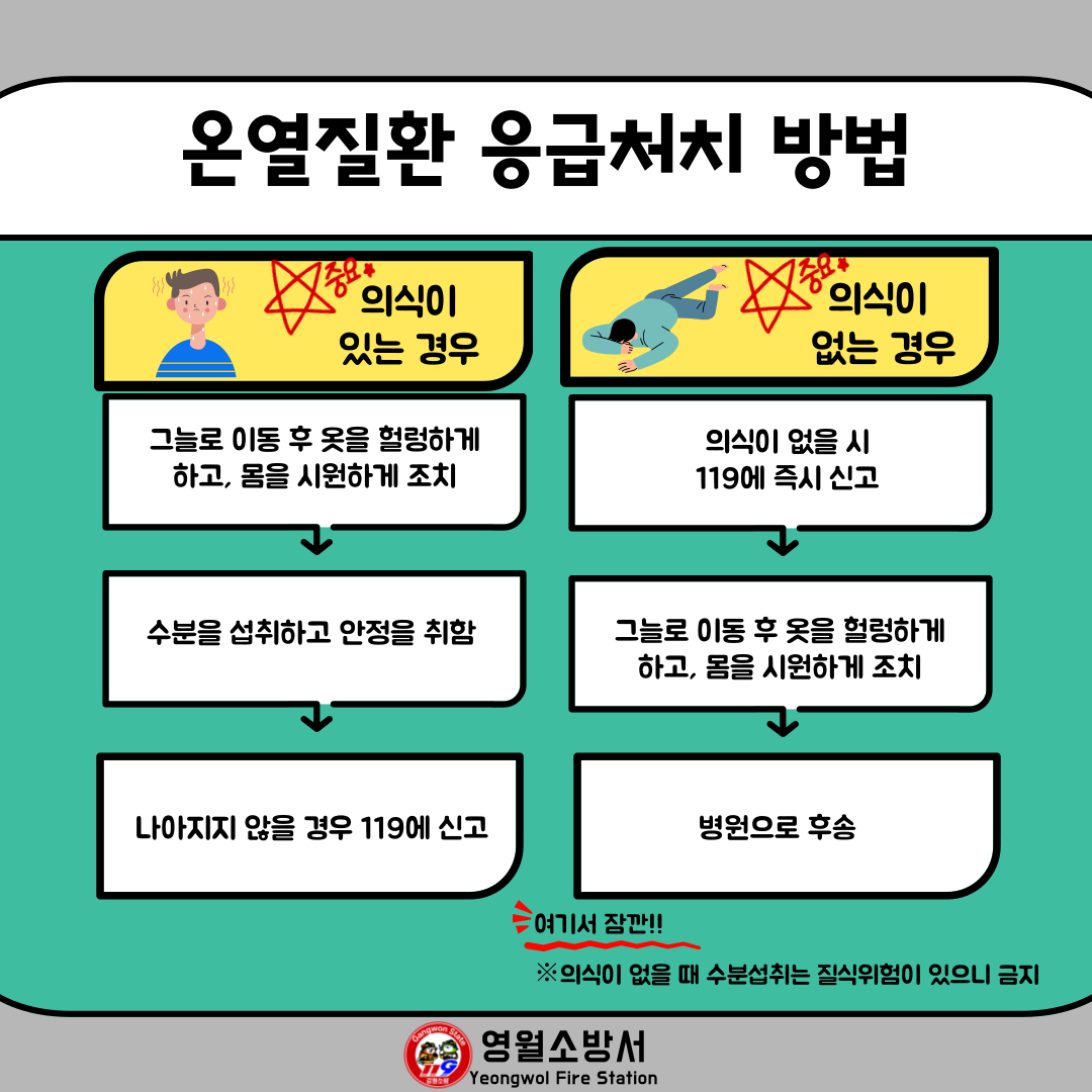 [카드뉴스]무더운 여름! 온열질환 응급처치 미리 알고 대비하세요!