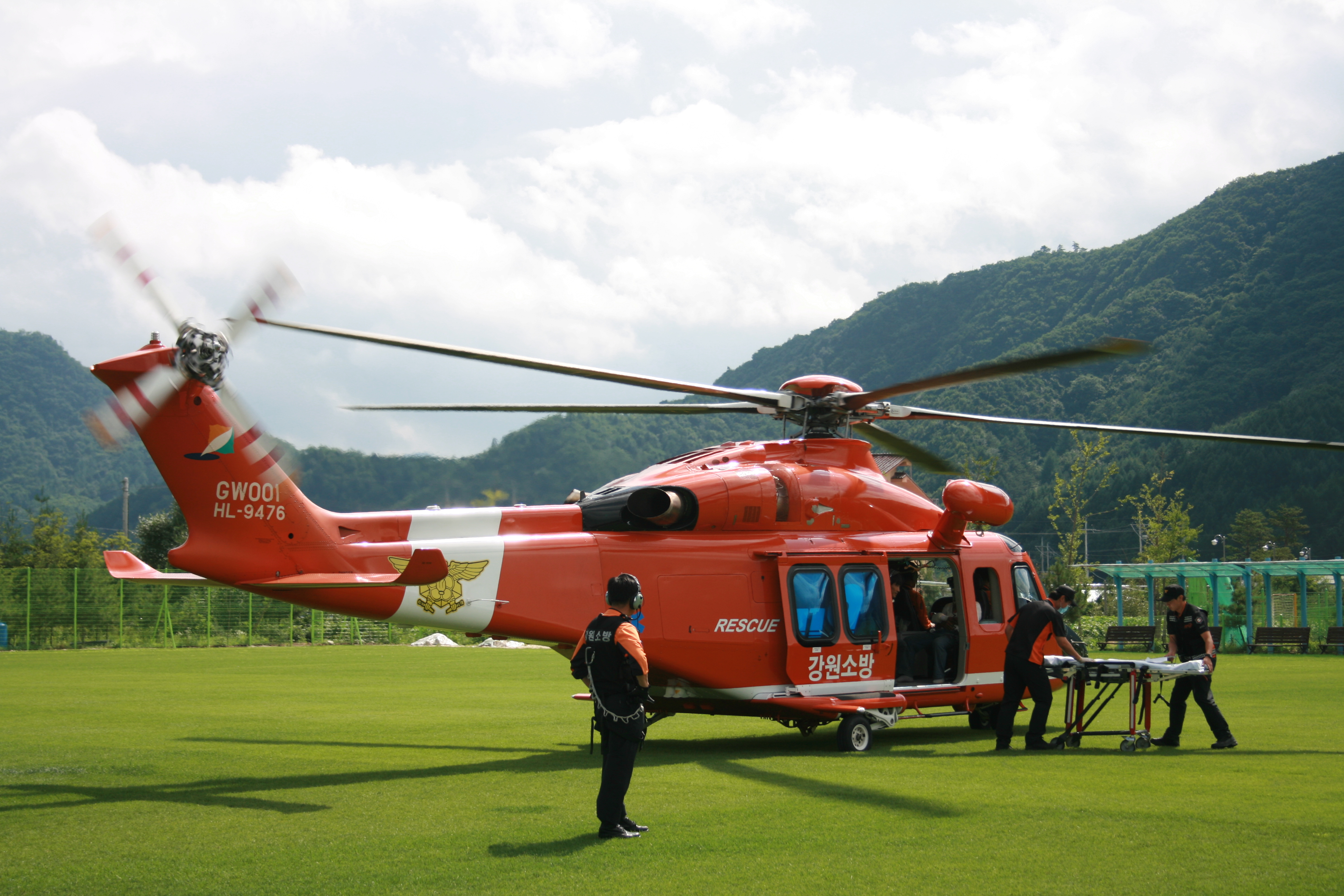 어제 오후 진부면 상오개월리에서 왼쪽 손가락 2,3번은 완전절단, 3,4번은 부분절단되는 위급한 환자가 발생, 신속한 출동 및 응급조치와 곧바로 이륙한 강원소방헬기,,,,,,환자분은 조립식판넬을 그라인더를 이용 절단작업중,,,,,사고가 발생,,, 서울로 신속히 이송조치 하였다..접합수술이 잘 되어야 할텐데,,,,어떤 작업장이라도 기계를 다룰땐 항시 긴장하고, 조심해야 함을 일깨워주는 사고였다....