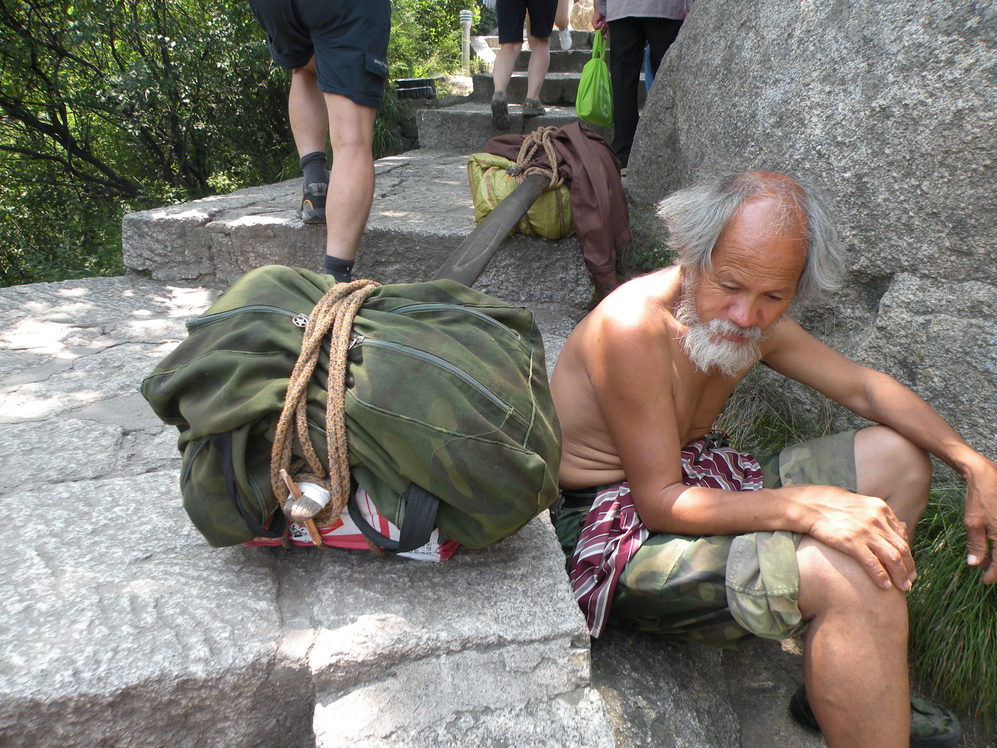 지난주 여름휴가차 중국을 다녀왔습니다. 워낙 땅떵어리가 커서그런지 대부분의 산도 장엄하고 거대한 명산이 많이 있지요. 그중 "서안"에 위치한 "화산(2,160m)"을 다녀왔다. 물론 다른 명소도 둘러보았지만, 산꾼인 내게 큰 관심은 역시 산행이었다.......암반으로 이루어진 "화산"정상까지 바위를 "정"으로 쪼아 만든 돌계단이 수천개가 있고,,,,정상까지 물과 음료수를 운반하는 짐꾼들의 모습에서,,,,,가히 감탄이 절로 나왔다...