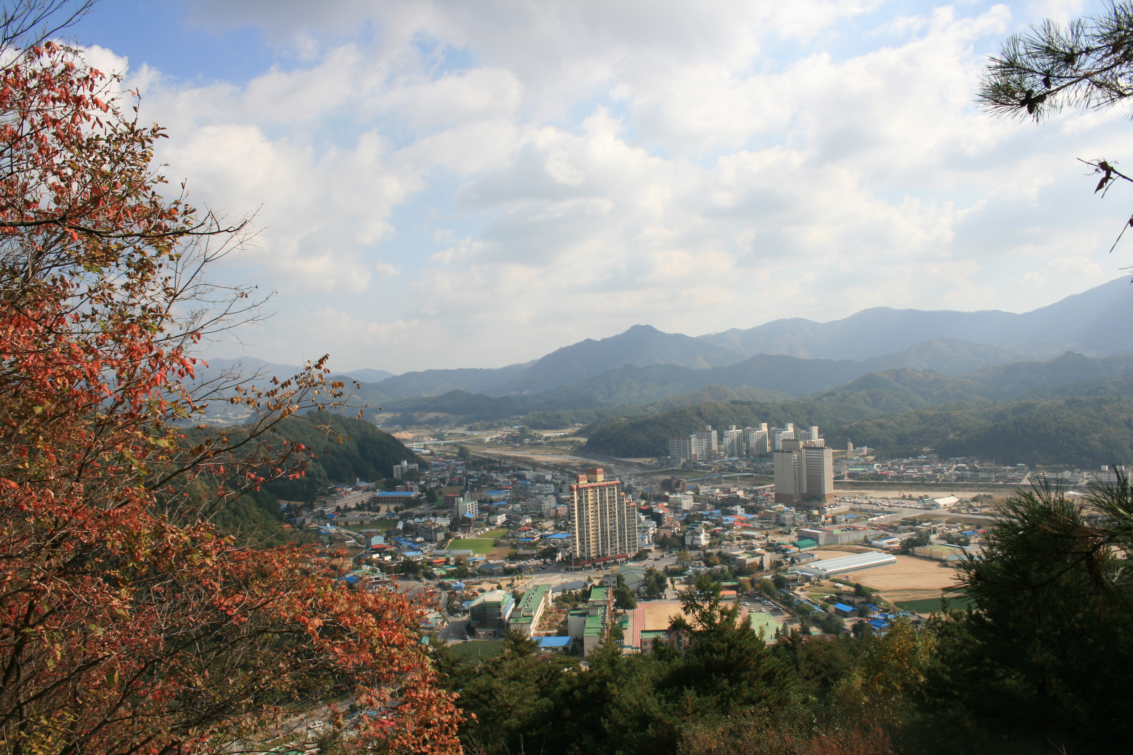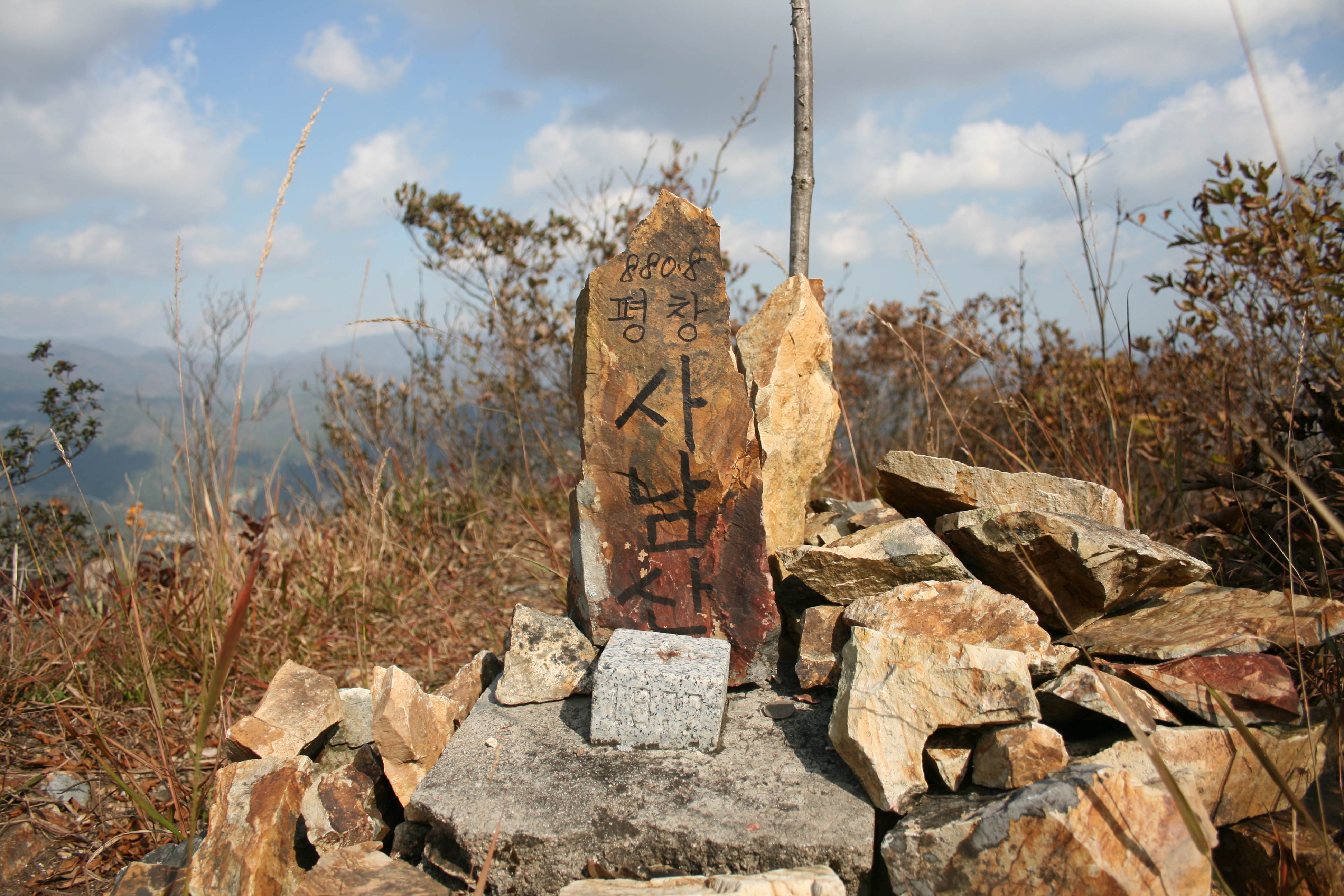 진부시내를 감싸안은 "석두산" 옆에 뽀족하게 솟아오른 산이 "사남산"입니다. 석두산은 많은 사람들이 오르지만, 사남산은 그리 많이 오르지 않는 산입니다. 해발 880m의 적당한 높이의 명산입니다. 이곳 역시 예쁜 단풍으로 물들었습니다.