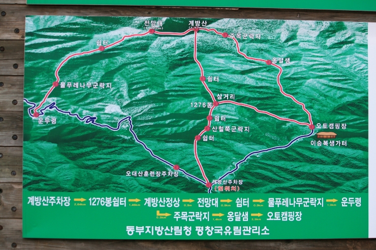 - 코 스 : 운두령 ~ 쉼터 ~ 전망대 ~ 계방산정상 ~ 능선길 ~ 계방산주차장까지