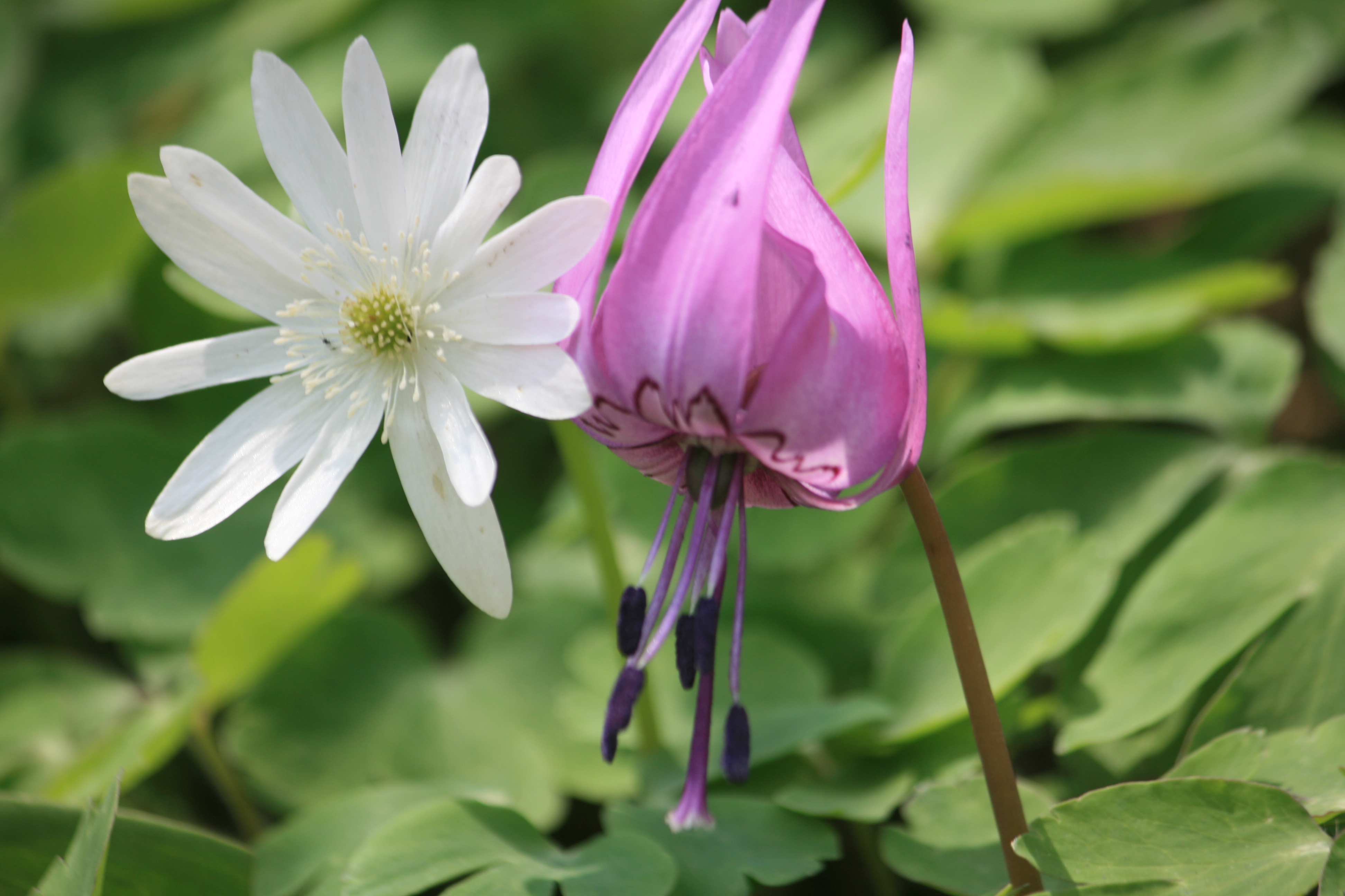 1.얼레지, 2. 동의나물, 3.꿩의바람꽃과 얼레지의 동거입니다.
