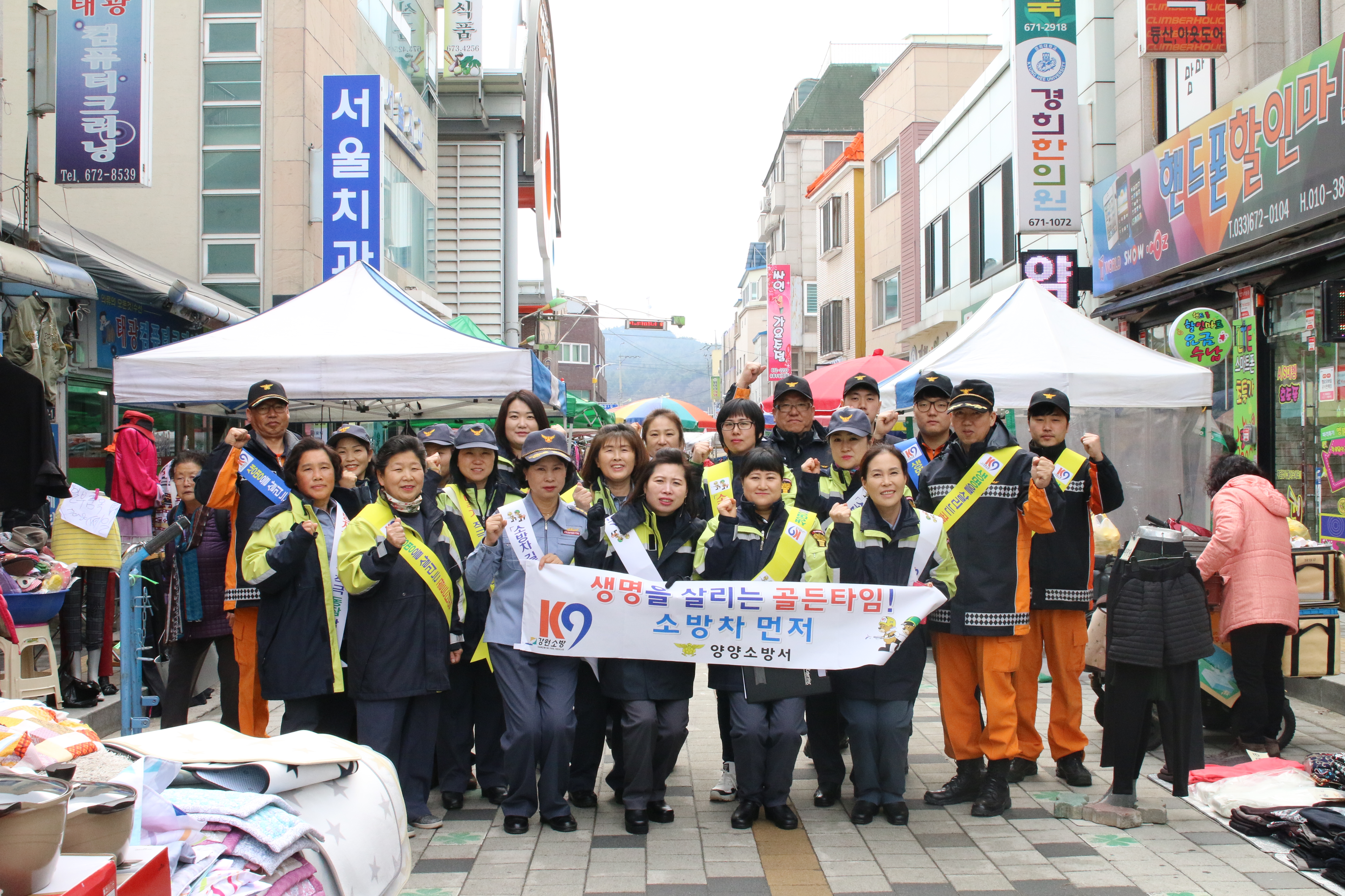 양양소방서(서장 이수남)는 24일 오전 10시 양양 전통시장, 둔치일원에서 소방관 30명, 의용소방대 40명 총 70명이 참가한 가운데‘소방차 길 터주기 및 봄철 화재예방 캠페인’을 실시하였다.