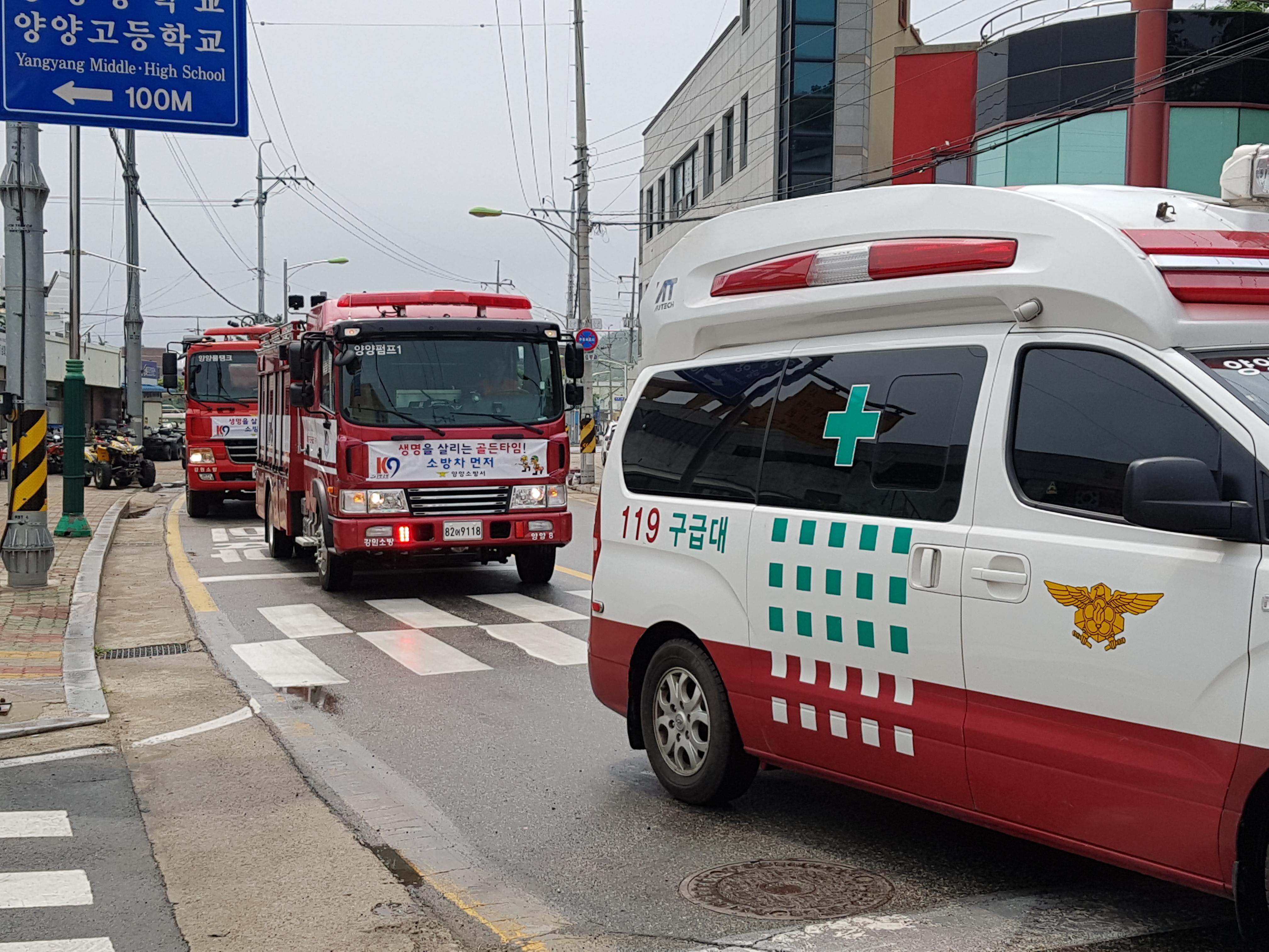 이수남 양양소방서장은 “소방차가 사이렌을 울리며 출동시에는 긴급상황이 발생했다고 생각하시고 갓길에 일시정지하거나 한쪽방향으로 피양하여 소방차량이 우선 통과할 수 있도록 양보를 바랍니다.”며 당부했다.