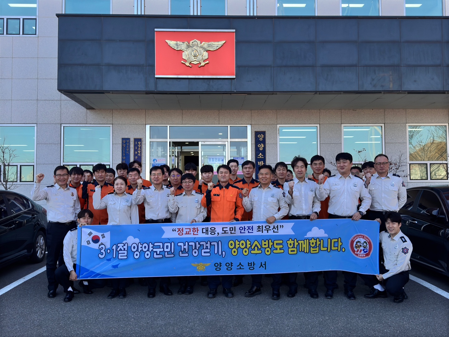 양양소방서(서장 김문하)는 19일 양양소방서 정문에서 내달 1일에 강원일보사, 양양군 체육회에서 주최하는 3·1절 건강 걷기대회 출전 결의대회를 가졌다.